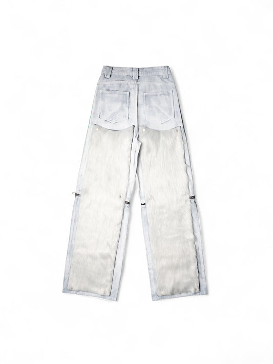 .White Convertible Fur Jeans